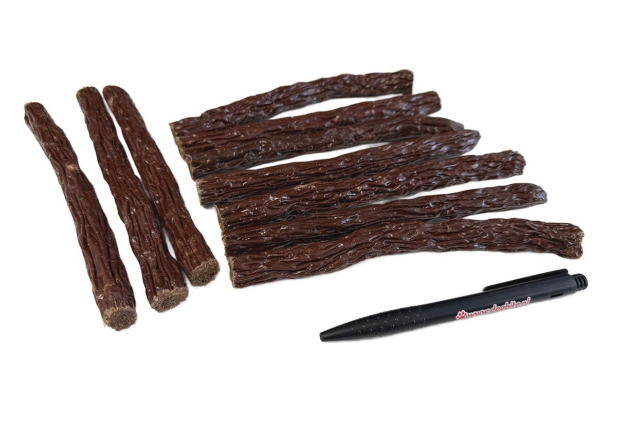 Vleesstaaf van 100% Hert heeft een lengte van ca. 19 cm.