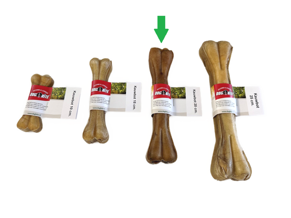 Deze zijn favoriet. Hij geniet zichtbaar van het kauwen op deze botten. Hij wordt er heerlijk rustig van. Maar dit formaat is binnen twee dagen al weggekauwd.