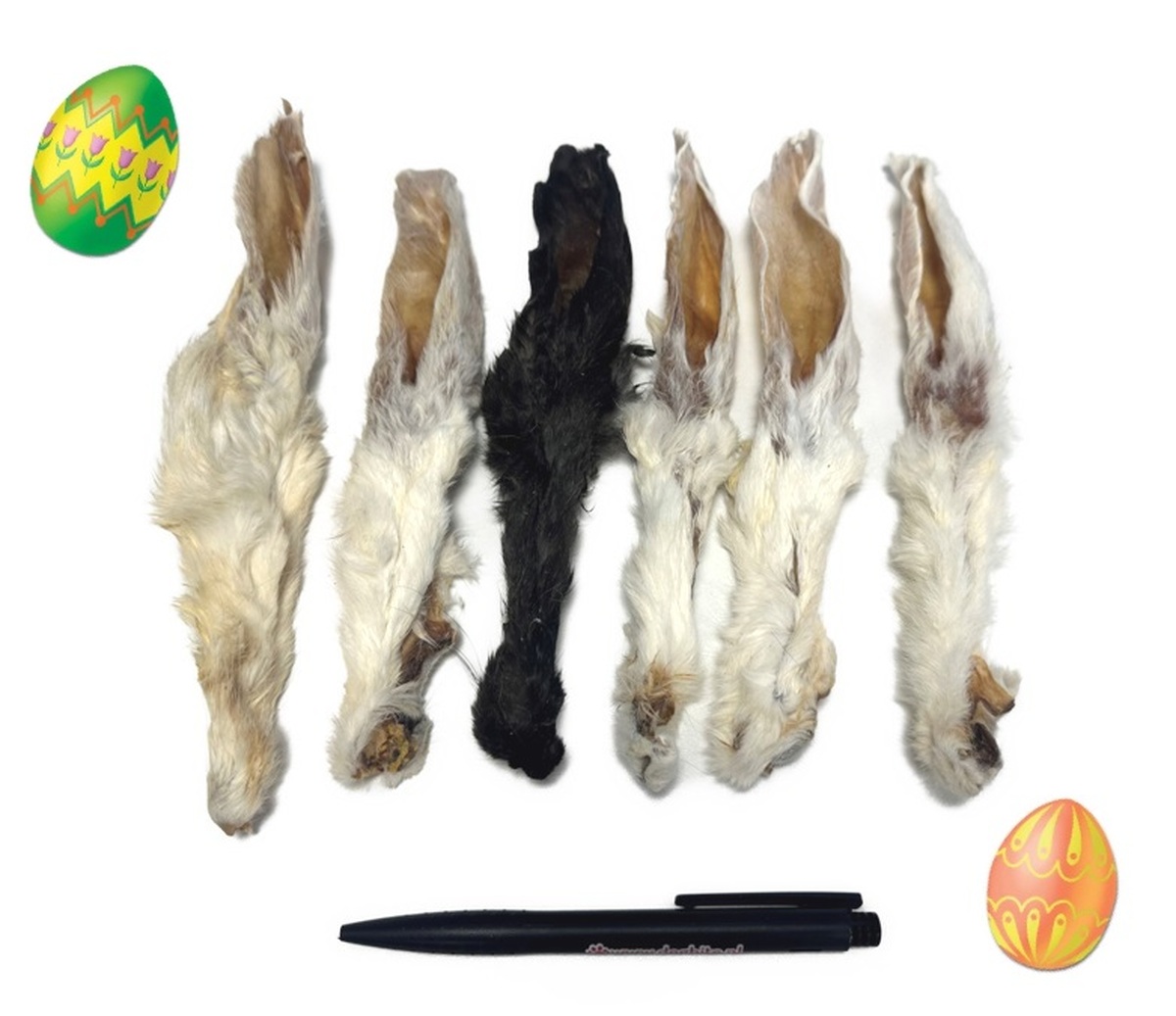 Konijnenoren met haar zijn hier favoriet! Ze ‘stinken’ niet en zijn niet vettig. Ideale snack, maar niet om echt lang mee bezig te zijn.