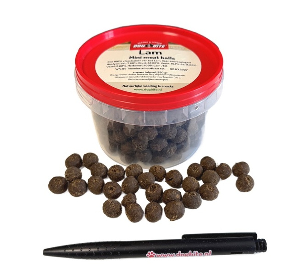 Deze Mini Meat Ball Trainer is van 100% gedroogd vlees ( organen spiervlees en bot ) van het Lam.