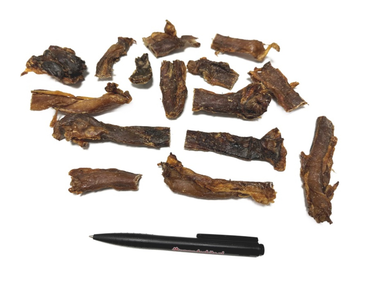 Mooie stukjes, weer net anders dan de andere slokdarm kauwsnacks, de teckels vinden het prima