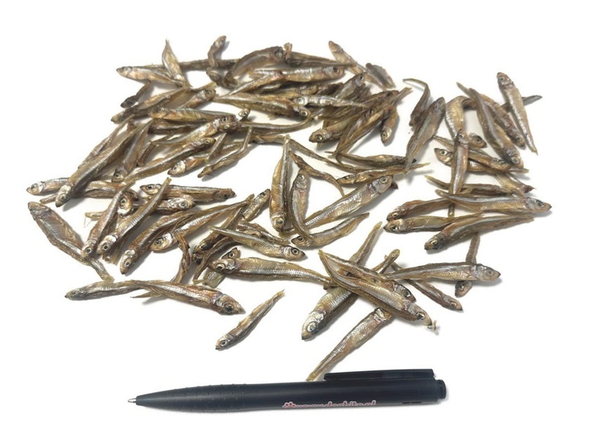 Goede kwaliteit visjes. Voor de hond knip ik ze in stukjes als beloning tijdens het trainen. Mijn kat krijgt ze heel als aanvulling op zijn dieet. Beide zijn er verzot op.