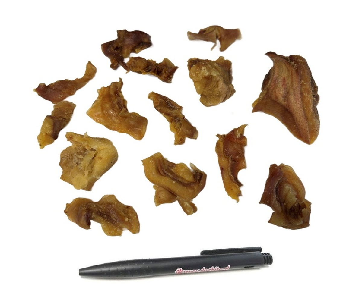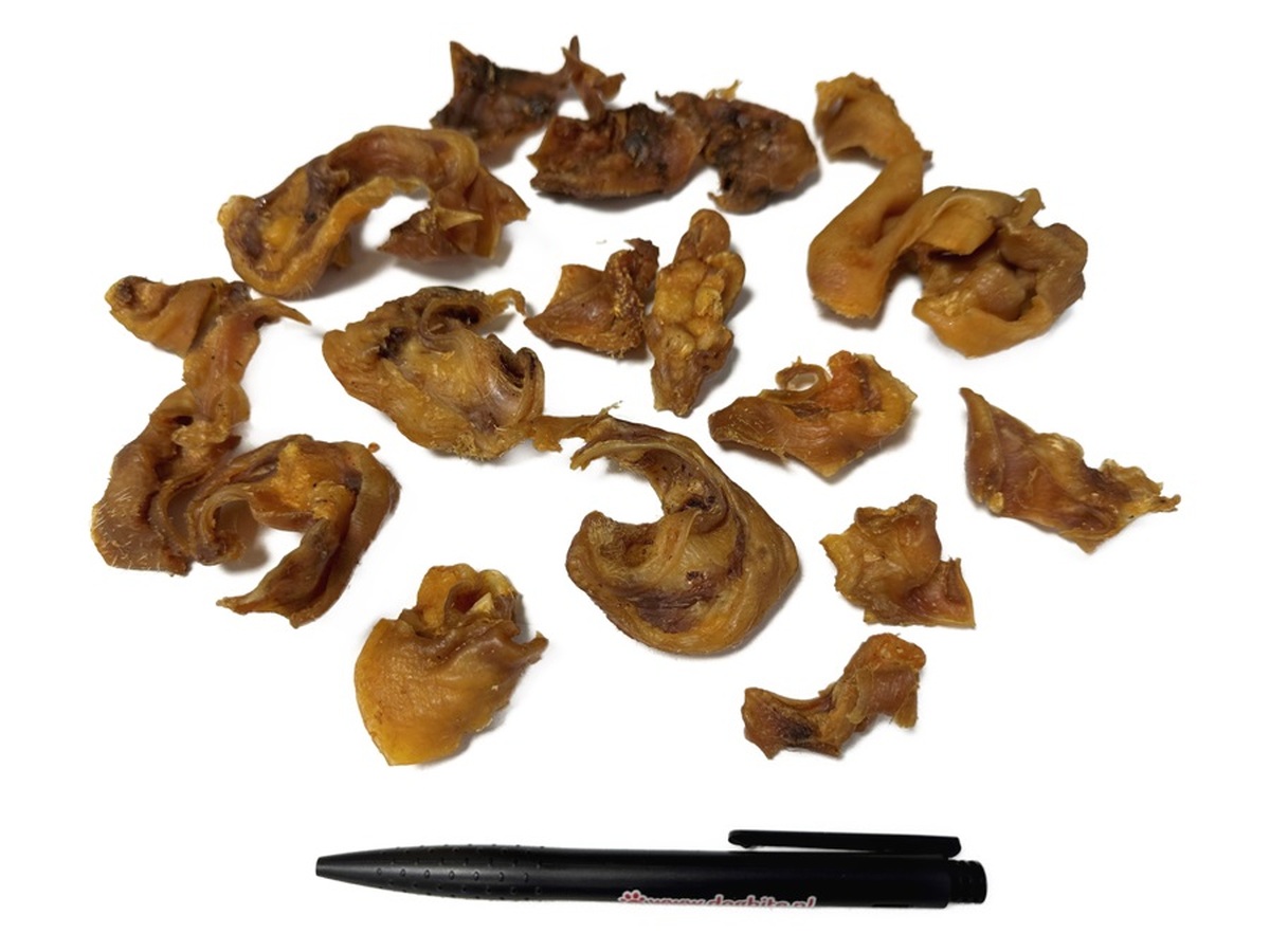 Varkensoorstukjes, 100% natuurlijk. Varkensoorstukjes is een hele bekende snack. Voor alle honden geschikt als tussendoortje.